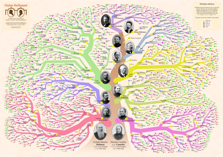 Oulun Hellmanien sukupuusta on laadittu uusi, yli 600 henkilöllä täydennetty versio. Sukupuu on nyt samalla tasalla uuden sukukirjamme kanssa. Tarjolla on A3- ja A2-kokoinen versio, niin kuin nykyisestäkin sukupuusta, jota nyt myydään poistohintaan.