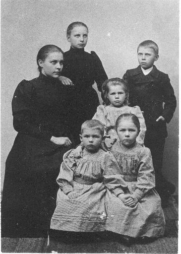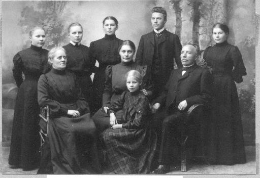 Henkilöt: Seisomassa Aino (45), Eeva (42), Maiju (46), Iivari (43), Elsa (44), istumassa Hanna o.s. Ryselin (-), Anna (41), Ilta (-), Wilhelm (4a). Aika: n. 1909. |